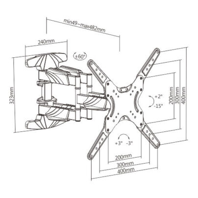 flat panel TVs up to 50kg/110lbs. The lengthened arm can be stretched up