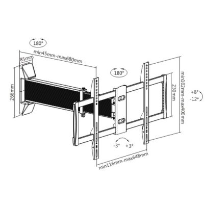 60° left or right and -10°~+2° tilt. This pre-assembled arm comes