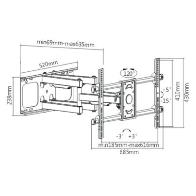 TVs up to 50kg/110lbs. The arm can be stretched up to 452mm for a full