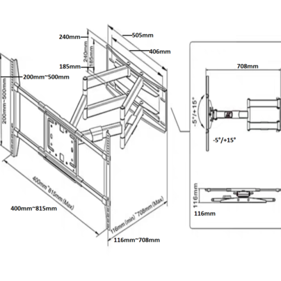The TF-X5 is a full-motion wall mount for most 32”-65” LED, LCD flat panel