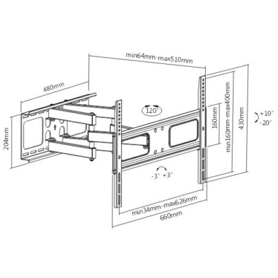 TVs up to 50kg/110lbs. The arm can be stretched up to 491mm for a full