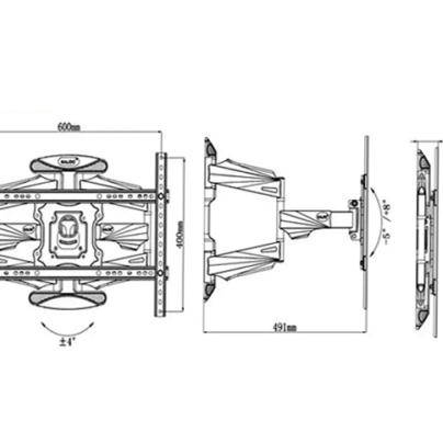 60° left or right and -5°~+8° tilt. This pre-assembled arm comes complete