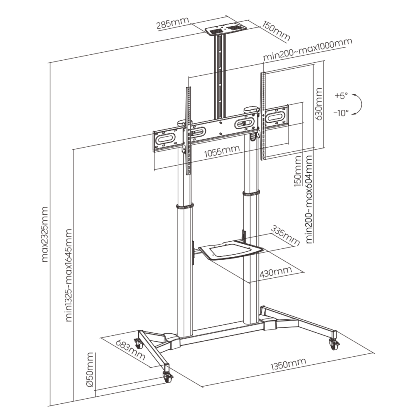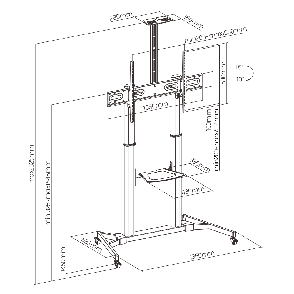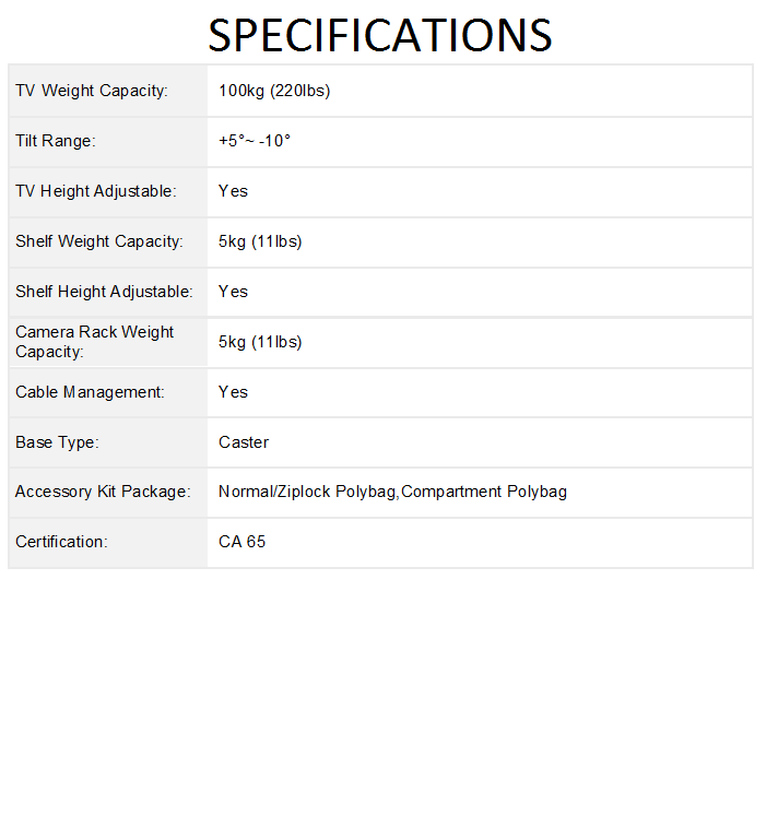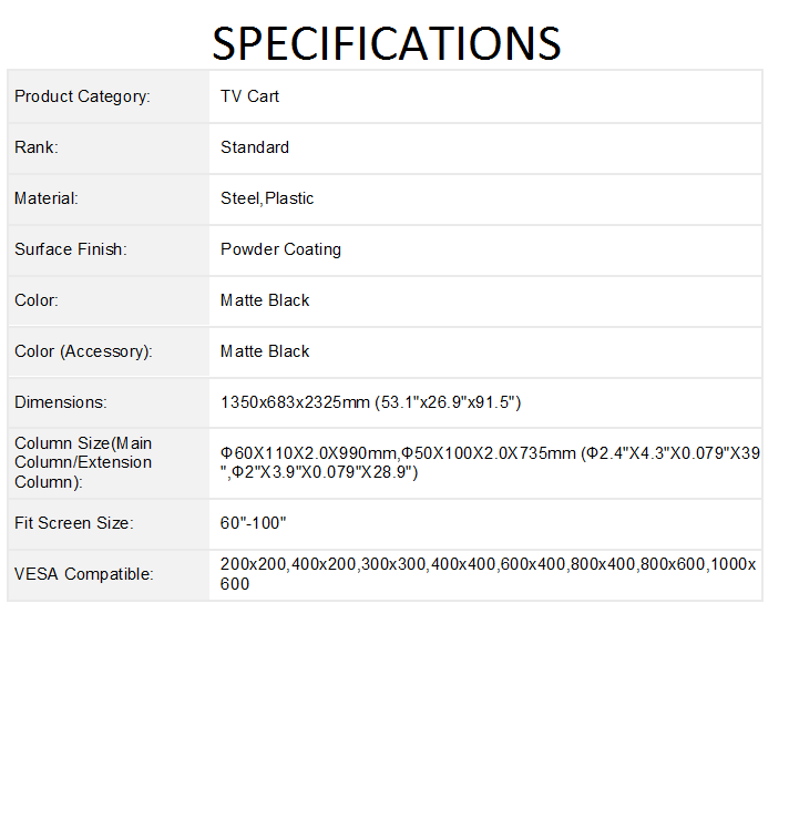 – Large Screen Telescopic Height Adjustable Steel TV Cart
