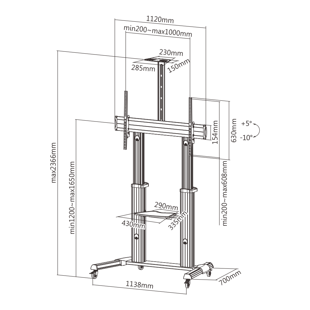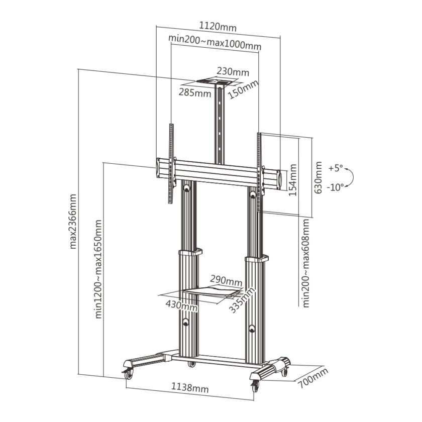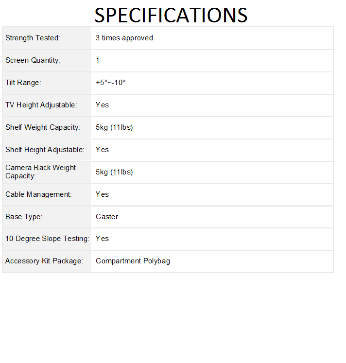 – Manual Lifting Height Adjustable Ultra Large Display TV Cart