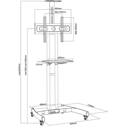 – Manual Lifting Height Adjustable Ultra Large Display TV Cart
